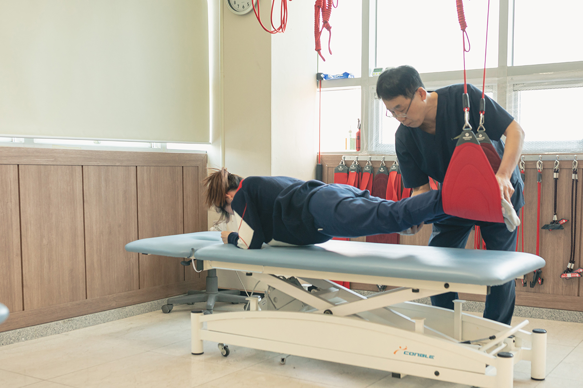 3층에 위치한 도수치료실에서는 해부학 및 생리학적 진단 하에 전문치료사가 환자 맞춤치료를 하여