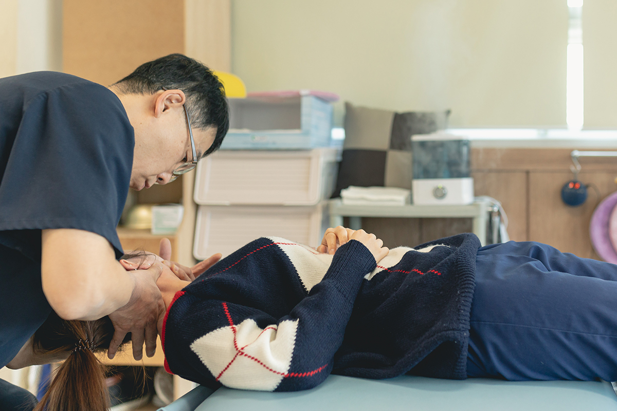 뭉친 근육과 틀어진 뼈, 관절을 수기로 압박, 이완하여 교정합니다. 특히 거북목증후군, 척추측만증, 자세 교정, 만성 통증에 효과적입니다.