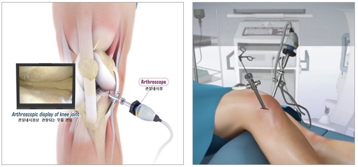 관절내시경시술은 무릎, 어깨, 팔꿈치, 족부 등 관절 손상부위에 5mm 미만의 아주 작은 구멍을 만들어 특수 렌즈가 장착된 내시경을 삽입하여 모니터로 병변을 직접 관찰하며 인대의 석회화침착, 미세한 뼛조각, 염증부위를 제거하고 손상부위에 적절한 치료를 시행할 수 있습니다. 시술 후 기대효과가 미흡하거나 드물게 국소감염, 방사통, 신경손상 등의 부작용이 발생할 수 있어 시술 전에 의료진과의 상담이 필요합니다.